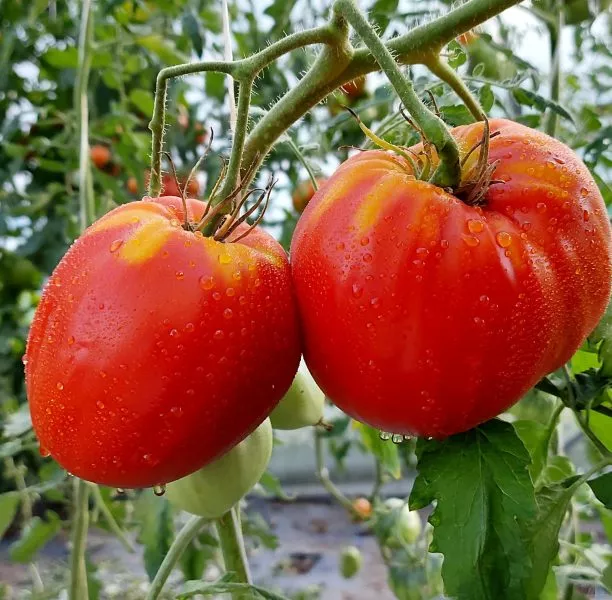 Стабильный полив важен для предотвращения растрескивания крупных плодов. Избегайте резких перепадов влажности почвы, особенно в период налива томатов.