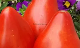 Главное украшение сорта — его плоды. Их сердцевидная форма с выраженным, заостренным «носиком» у основания является визитной карточкой. Плоды не просто овальные, а имеют четко выраженную сердцевидную форму, что отличает их от многих других биф-томатов.