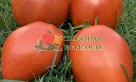 В стадии полной зрелости они приобретают насыщенный красно-малиновый цвет, без зеленого пятна у плодоножки. Кожица тонкая, но при этом достаточно плотная, что является важным качеством для таких крупноплодных томатов и предохраняет их от растрескивания.
