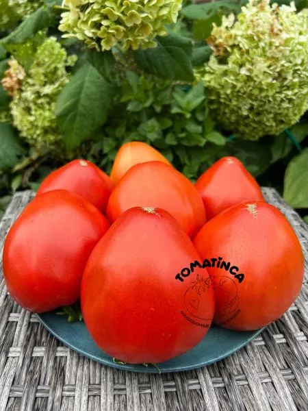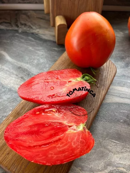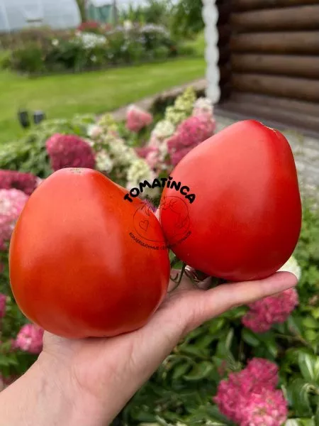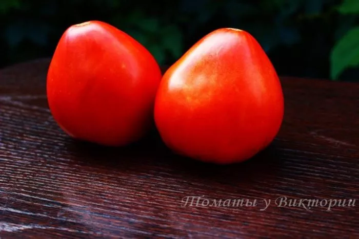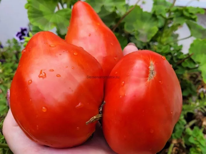 Главное украшение сорта — его плоды. Их сердцевидная форма с выраженным, заостренным «носиком» у основания является визитной карточкой. Плоды не просто овальные, а имеют четко выраженную сердцевидную форму, что отличает их от многих других биф-томатов.
