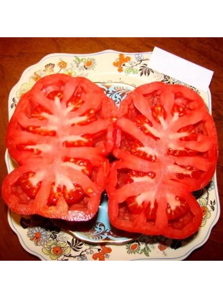 В стадии полной зрелости они приобретают насыщенный красно-малиновый цвет, без зеленого пятна у плодоножки. Кожица тонкая, но при этом достаточно плотная, что является важным качеством для таких крупноплодных томатов и предохраняет их от растрескивания.