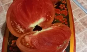 Мякоть очень мясистая, плотная и сахаристая на изломе, с небольшим количеством семян и семенных камер. Эта особенность, наряду с насыщенным вкусом, определяет его назначение: плоды отлично подходят для приготовления густых соков, соусов, паст и лечо, где важна концентрация вкуса и плотная текстура.