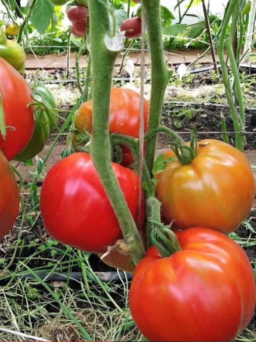 Из-за значительной массы плодов, которая стартует от 400 граммов, кисти нагружены очень сильно. Часто в одной кисти нижние, более крупные помидоры уже созрели, а верхние еще только наливаются. Поэтому сбор выборочный, по мере достижения плодами нужной кондиции.