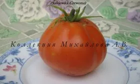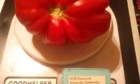 Ребристость, как правило, усиливается у наиболее крупных экземпляров, масса которых приближается к верхней границе заявленного диапазона. Несмотря на тонкую кожицу, она достаточно плотная и глянцевая, что предохраняет плоды от растрескивания. При полном созревании окраска становится равномерно-красной без зеленого пятна у плодоножки.