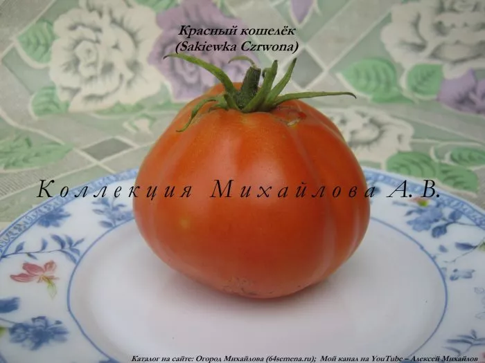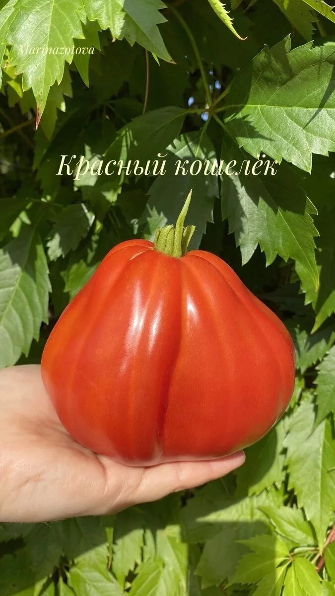 Плоды являются визитной карточкой сорта. Их форма не является стабильно грушевидной. На одном растении могут одновременно созревать два типа томатов: классические «груши» с четко выраженным носиком и сильноребристые, многокамерные плоды, напоминающие складчатый гребень. Эта вторая форма и дала сорту его название «Кошелек».