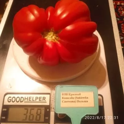 Ребристость, как правило, усиливается у наиболее крупных экземпляров, масса которых приближается к верхней границе заявленного диапазона. Несмотря на тонкую кожицу, она достаточно плотная и глянцевая, что предохраняет плоды от растрескивания. При полном созревании окраска становится равномерно-красной без зеленого пятна у плодоножки.