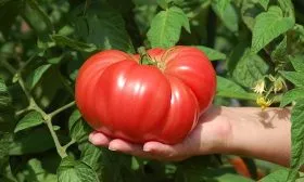 Плоды завязываются в кистях. Их главная отличительная черта – выдающаяся масса, которая в среднем соответствует заявленным 600 граммам. На первых, нижних кистях, где растение направляет максимум ресурсов, плоды нередко бывают еще крупнее, особенно при нормировании количества завязей.