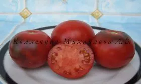 Форма плодов варьируется от круглой до плоскоокруглой, часто с легкой ребристостью у плодоножки, что характерно для многих крупноплодных сортов. Средняя масса плода достигает 250 граммов. Мякоть в разрезе — сочная, мясистая, многокамерная, насыщенного красно-коричневого цвета с небольшим количеством семян.