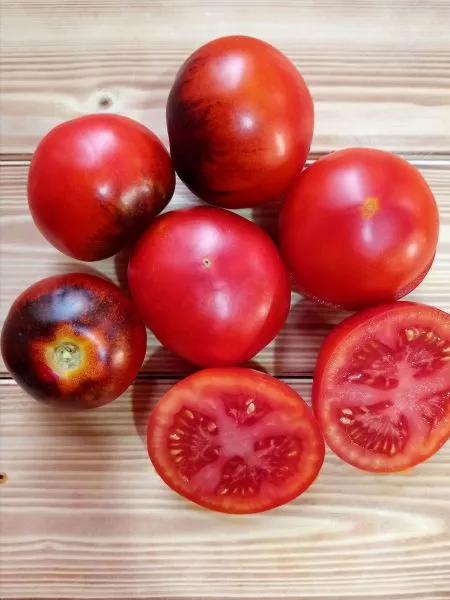 - Высокое содержание сухих веществ в мякоти открывает отличные возможности для вяления, сушки или приготовления густой, концентрированной томатной пасты и соусов. При уваривании цвет соуса становится глубоким, почти черным.