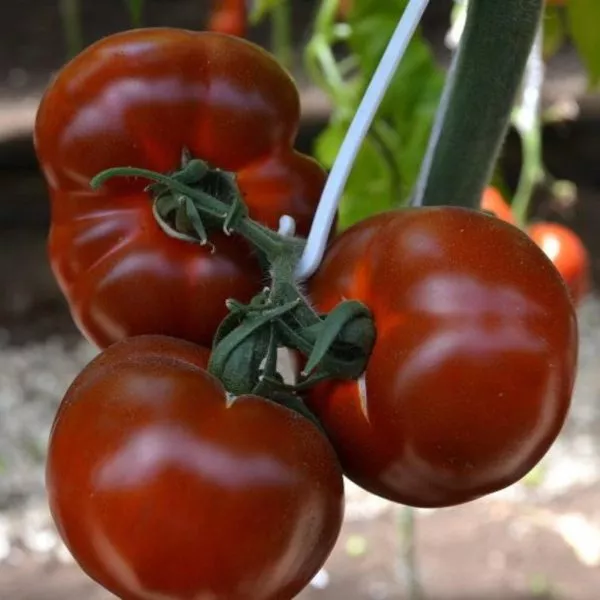 Ключевая особенность сорта — уникальный красно-коричневый окрас, который проявляется только при полном биологическом созревании на кусте. Снимать томаты рекомендуется именно в этой стадии, так как они набирают максимально насыщенный, запоминающийся вкус и характерную для сорта окраску. Техническая спелость (когда плод сформирован, но еще зеленый) для свежего употребления не подходит.