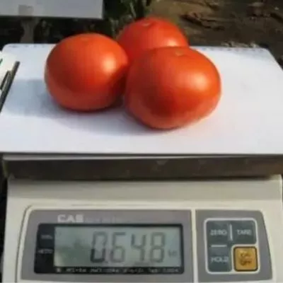 Масса каждого томата находится в диапазоне от 85 до 121 грамма. Такой калибр, сопоставимый с крупным куриным яйцом или небольшим яблоком, считается универсальным.