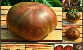 Плоды плоскоокруглой формы, часто с заметной ребристостью у плодоножки. Ребристость является сортовым признаком и обычно усиливается у самых крупных экземпляров, формирующихся на нижних кистях. Средняя масса в 250-350 граммов достигается при соблюдении агротехники; без нормирования завязей плоды могут мельчать к верхушке куста.