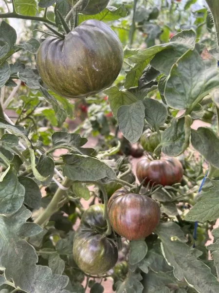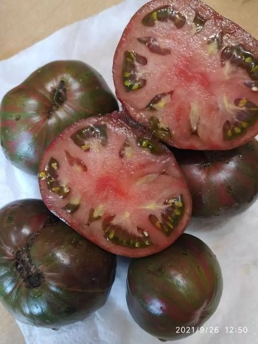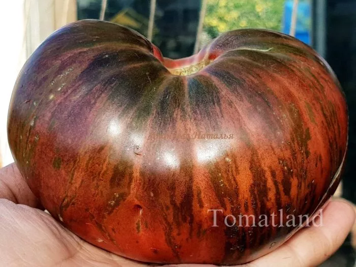 Окраска — визитная карточка сорта. Полное созревание характеризуется переходом основного фона в насыщенный красный цвет, на котором проступают контрастные зелено-коричневые полосы. Эти полосы — не равномерный штрих, а скорее живописные разводы, что делает каждый плод уникальным. Полное раскрытие вкуса с его сложными фруктовыми нотами происходит только при созревании на кусте.