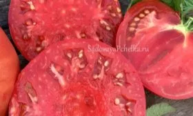 Мякоть мясистая, сочная, с хорошо сформированными семенными камерами. Количество семян умеренное, что характерно для современных гибридных форм. Плодоножка имеет сочлененный тип, что облегчает сбор урожая, минимизируя повреждение плода.