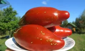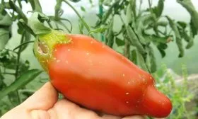 Главная отличительная черта сорта – уникальная форма плодов. Они не просто удлиненные, а имеют ярко выраженную перцевидную форму: часто сужаются к кончику, образуя характерный «носик». У основания, в области плодоножки, может наблюдаться слабая ребристость. Средняя масса одного томата составляет 200-300 граммов, что для перцевидной формы является весьма солидным показателем.