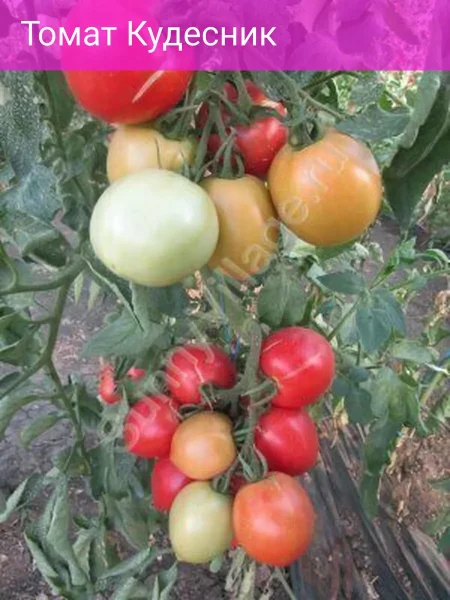 - Переработка на продукты. Мясистая структура и насыщенный розово-малиновый цвет обуславливают высокое качество продуктов переработки. Из томатов Кудесник получаются густые, вкусные соки, пасты, соусы и лечо с минимальным количеством отходов и ярким цветом готового продукта.