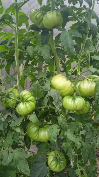Динамика роста и окраски. Плоды на нижних кистях, как правило, значительно крупнее (ближе к верхней границе заявленной массы в 800 г), тогда как на верхних ярусах они мельче. Окрас в технической спелости — зеленый, при полном созревании равномерно сменяется на насыщенный красный. Плодоножка имеет сочленение.