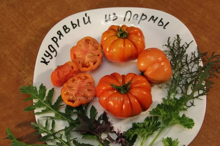 Ключевая особенность сорта, закрепленная в его названии, — уникальная, сильно ребристая форма плода. Эта «кудрявость» или «гофрированность» — не случайная причуда, а селекционный признак. Такая форма часто коррелирует с повышенным содержанием сухих веществ в мякоти и меньшим количеством семенных камер и свободной жидкости. Именно это делает плоды данного сорта исключительно ценным сырьем для кетчупов и паст.