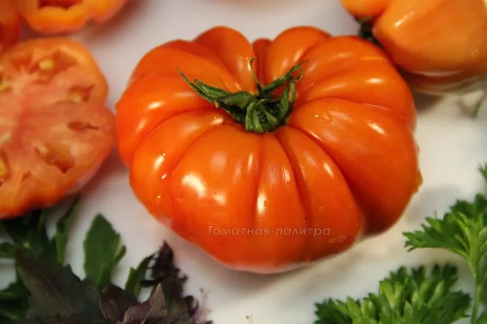 Именно сочетание гигантских размеров, экзотической ребристой формы и плотной, почти бессемянной мякоти делает этот сорт легко узнаваемым и востребованным для приготовления густых соусов, паст и кетчупов, где важна сухая масса продукта.