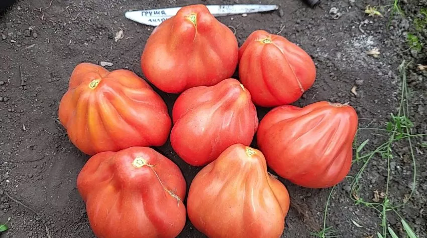 Плоды обладают набором характеристик, редко сочетающихся в одном сорте. Грушевидная форма, типичная для коктейльных томатов, здесь сочетается с настоящей крупноплодностью. Мякоть отличается высокой плотностью и мясистостью, с малым количеством семян и семенных камер. Именно это делает сорт исключительно удобным для переработки на густые соусы, пасту или кетчуп — выход готового продукта будет высоким.