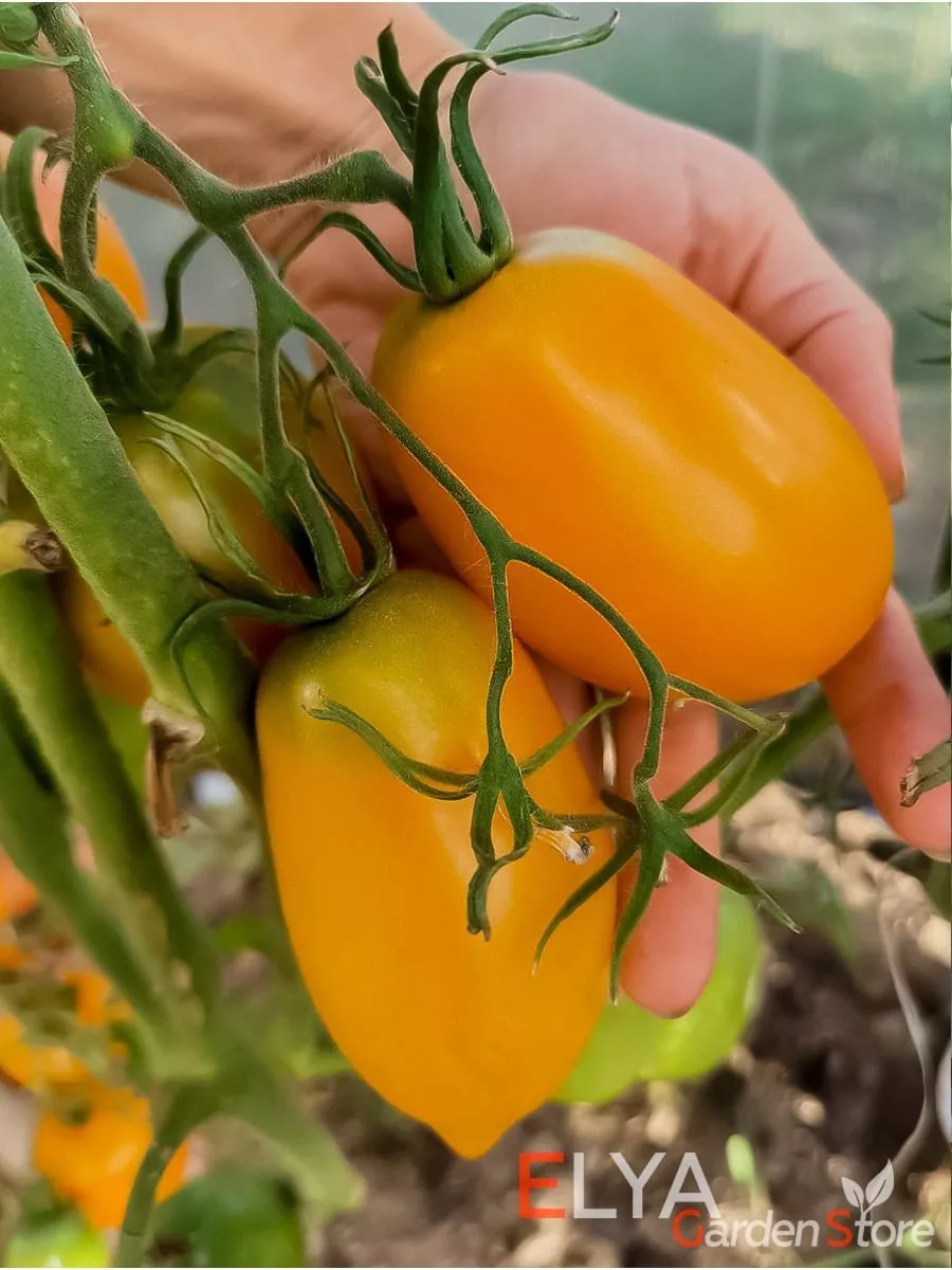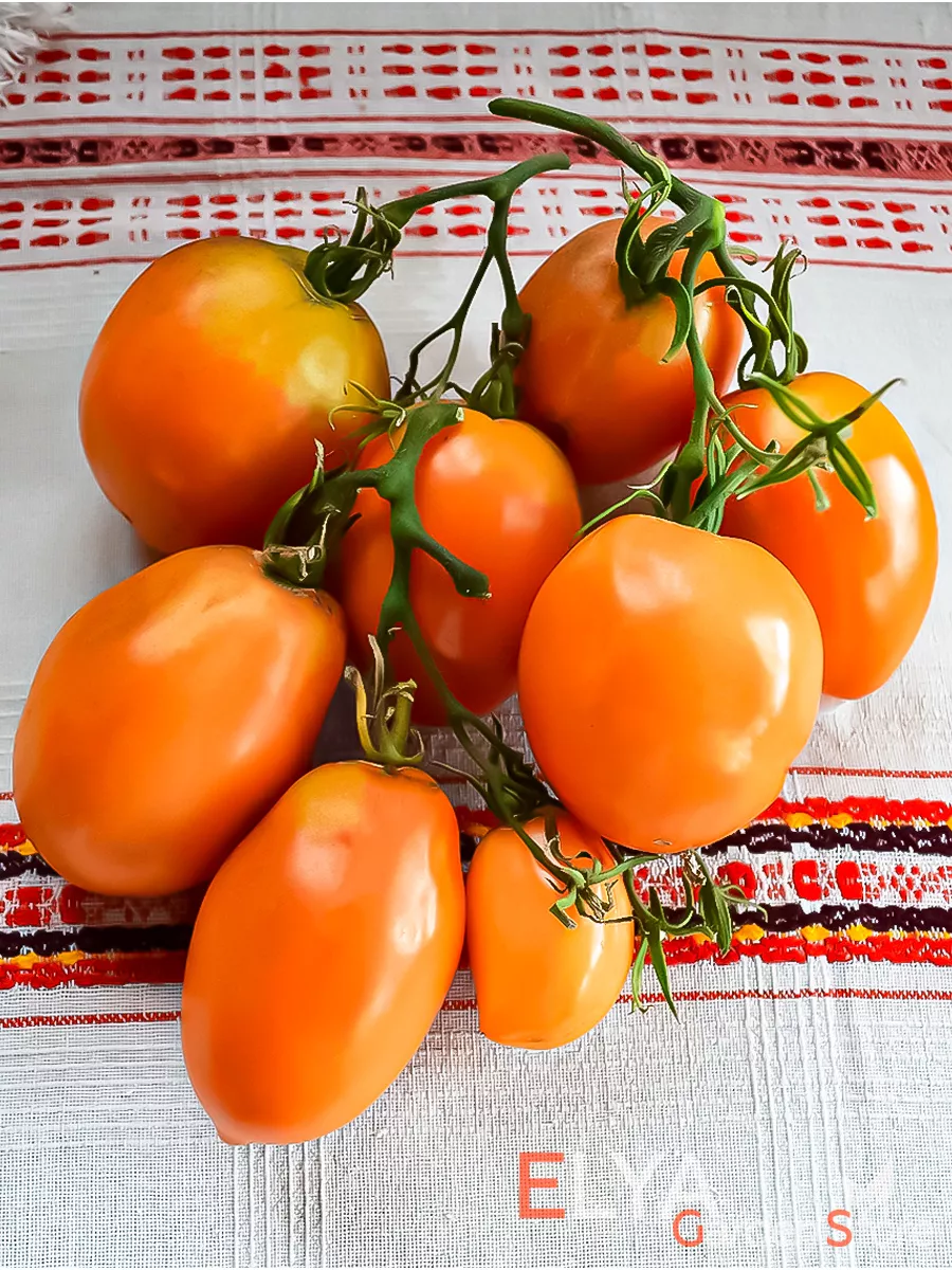 Окраска в технической спелости — равномерная, без зеленого пятна у плодоножки. По мере созревания кожица и мякоть приобретают насыщенный желто-оранжевый, «абрикосовый» оттенок. Плоды собраны в простые кисти, обычно по 5-7 штук, что создает эффектную гроздь.