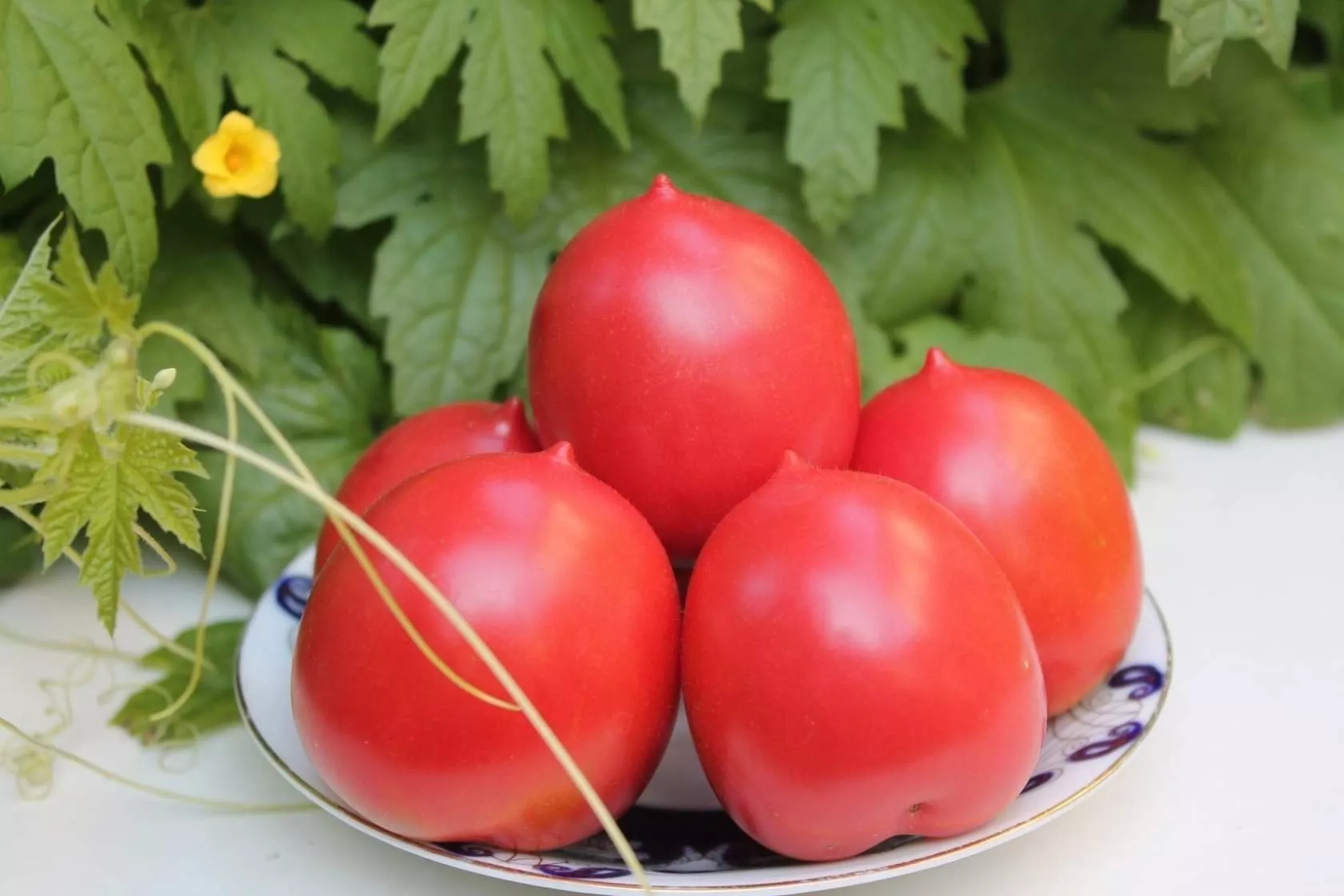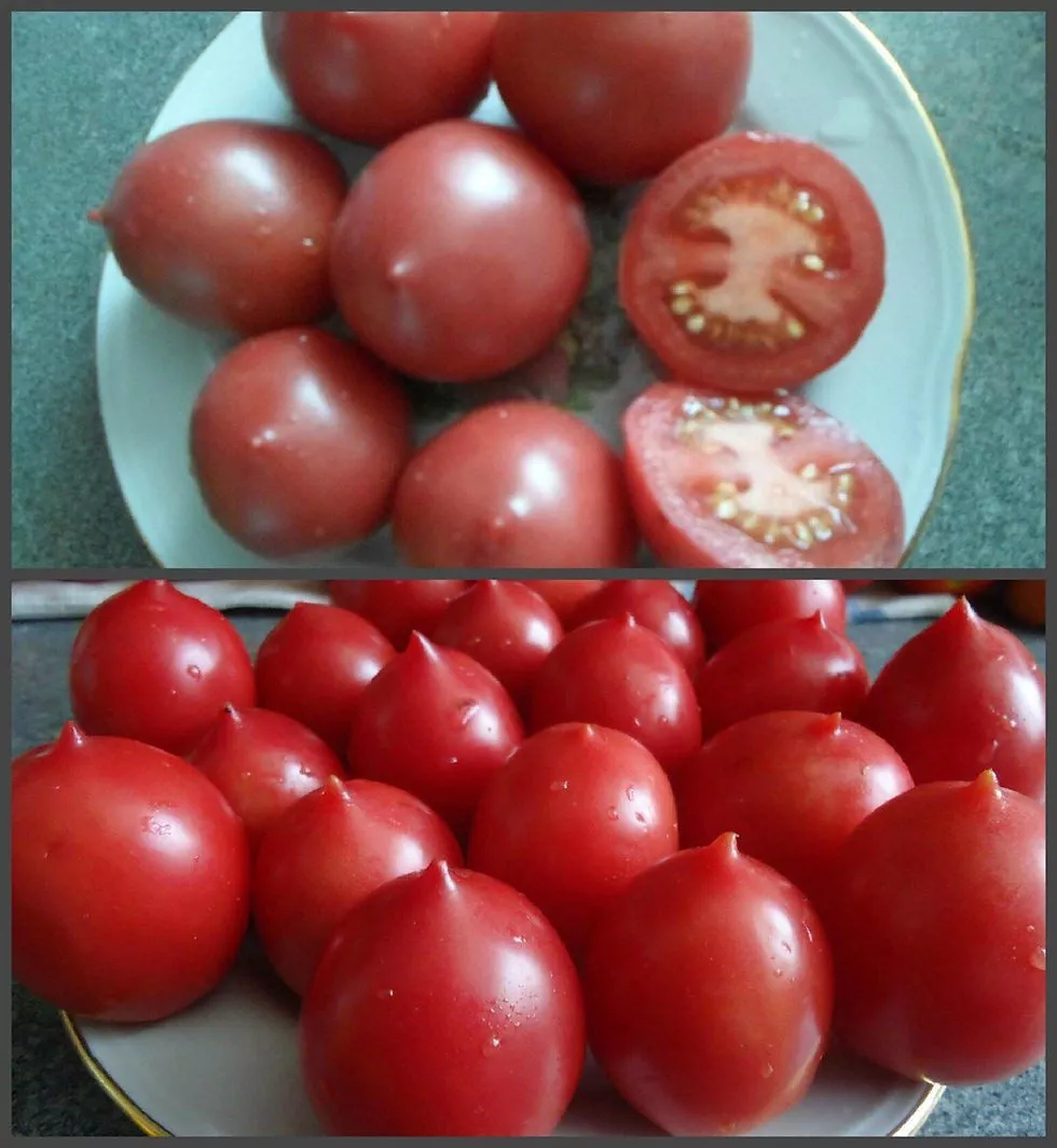 Главная отличительная черта — плоды изящной, вытянутой сливовидной формы с четко выраженным острым «носиком» на вершине. Эта уникальная деталь и легла в основу названия сорта. В фазе технической спелости томаты имеют светло-зеленую окраску без темного пятна у плодоножки.