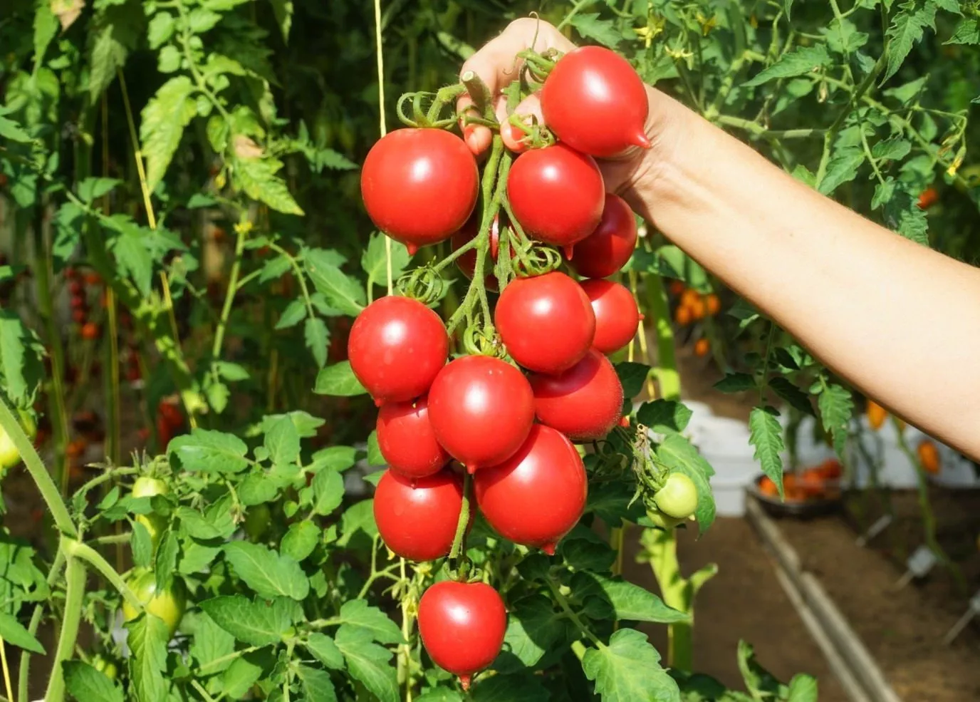 Подвязка должна быть капитальной и многоуровневой. Стебель фиксируют к опоре мягкой лентой сразу после высадки, а затем подвязывают под каждой новой цветочной кистью. Особое внимание уделяют тяжелым гроздям со множеством плодов — их также целесообразно поддержать отдельно, чтобы кисть не обломилась под собственным весом.