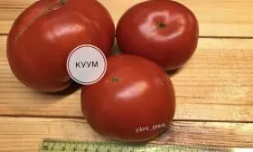 Мякоть очень плотная, мясистая и при этом сочная. На разломе явно видна ее сахаристая, зернистая структура. Плоды многокамерные, но семенных камер немного, и они заполнены мякотью с небольшим количеством семян. Такое строение делает томаты Куум идеальными для свежих салатов и переработки на густые соусы или соки.