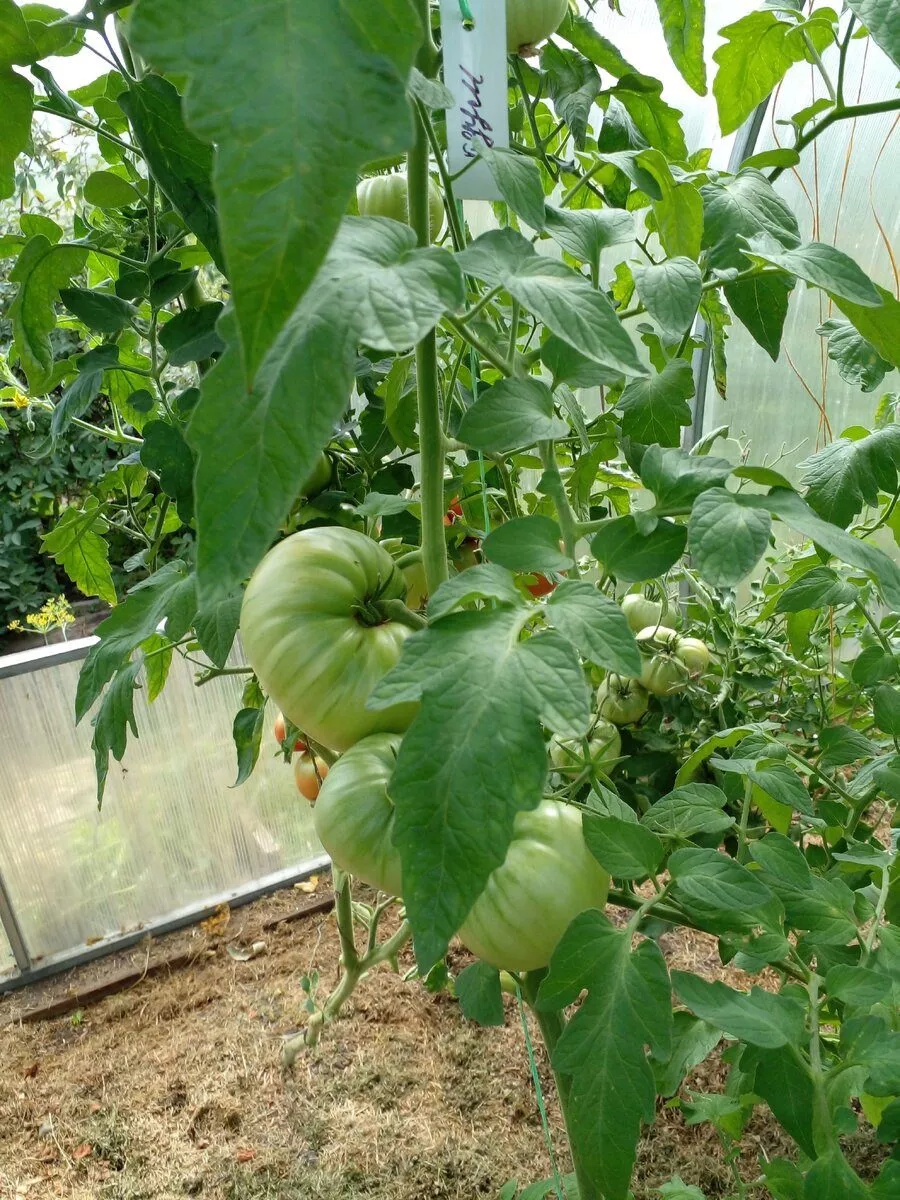Подвязка — не просто рекомендация, а обязательная процедура. Стебель высотой до двух метров и кисти с плодами массой 300-400 граммов не выдержат собственного веса. Используют шпалеру или высокие прочные колья. Подвязывают не только главный стбель по мере роста, но и отдельные тяжелые кисти, чтобы плодоножки не отламывались.