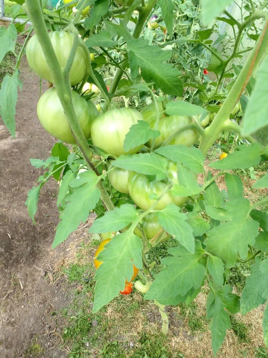 Куст этого сорта обладает выраженной силой роста, что полностью соответствует его индетерминантному типу. Мощный центральный стебель и развитая корневая система служат надежной основой для формирования и питания крупноплодного урожая. Листовой аппарат умеренной густоты, что является преимуществом: такая открытая архитектура куста способствует хорошей циркуляции воздуха и освещенности завязей, снижая риск развития грибковых заболеваний.