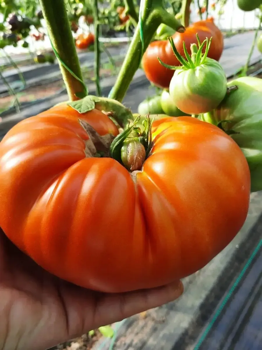 | Форма и цвет плода | Плоскоокруглая, красный | Классический «биф-томат» (бифштексный) с выраженной ребристостью у плодоножки. Окрас равномерный, без зеленого пятна. |