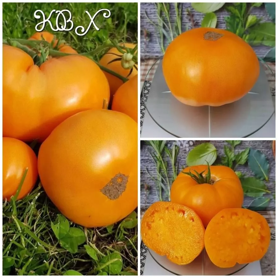 Аббревиатура КВХ чаще всего расшифровывается как «Крупный, Вкусный, Хороший». Это название-характеристика точно отражает суть сорта, описанную в технических данных: очень крупные плоды массой от 400 до 600-800 граммов и необычайно вкусная мякоть. Такое «говорящее» имя типично для сортов, рожденных в среде коллекционеров и опытных огородников.