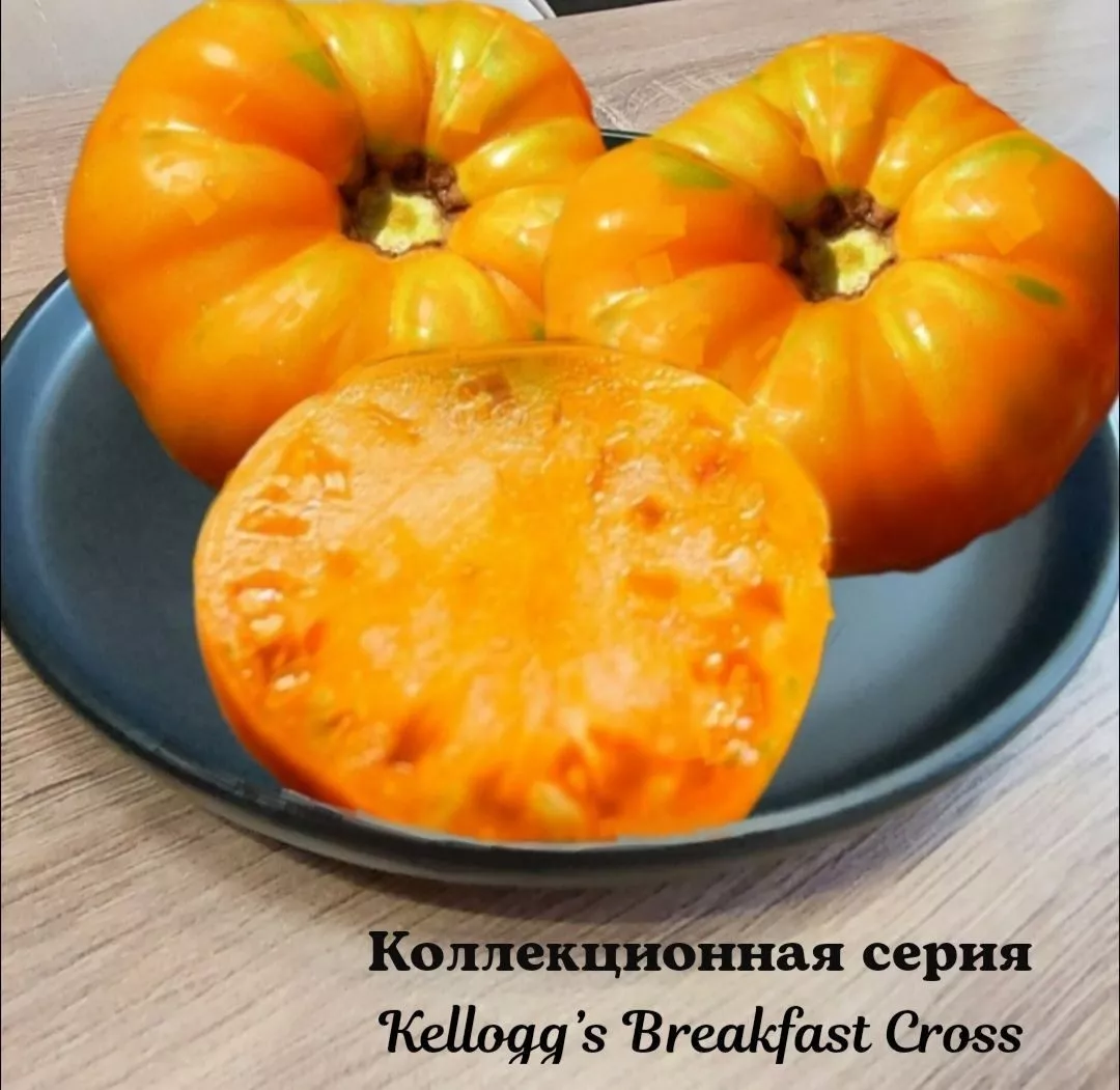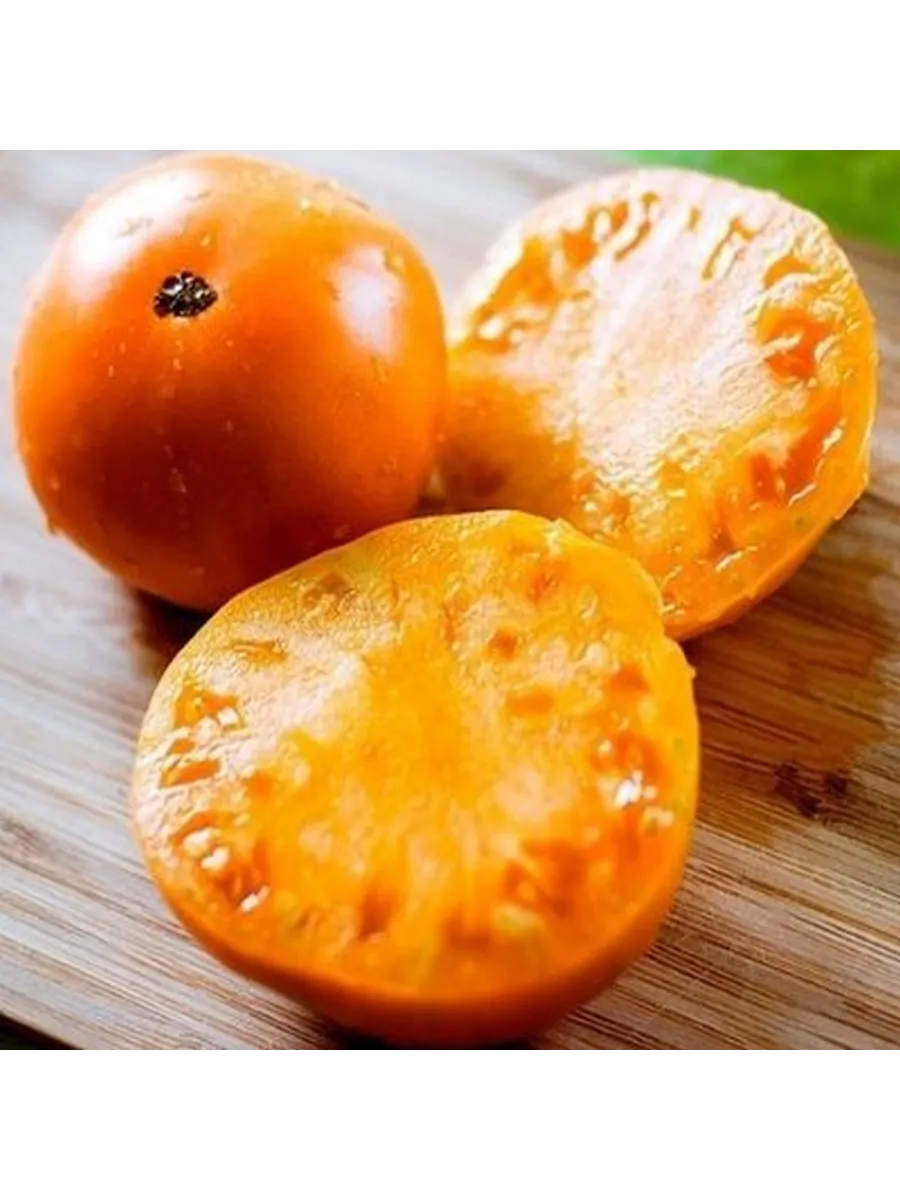 Именно плоды — визитная карточка этого сорта. Их плоскоокруглая, часто слегка ребристая у плодоножки форма классична для биф-томатов (крупноплодных мясистых сортов). Но главная отличительная черта — это уникальный окрас. Насыщенный абрикосовый цвет в полной зрелости может приобретать легкие персиковые или теплые розоватые оттенки, что делает плоды необычайно декоративными. Окрашивание происходит равномерно, без характерного для многих сортов зеленого пятна у основания.