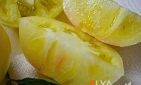 Плоды плоскоокруглой, бифштексной формы и крупного размера (от 150 до 250 граммов, а иногда и больше) идеально подходят для нарезки крупными, эффектными ломтями. Их необычный окрас — от белого до бледно-желтого с розовым румянцем — создает яркие акценты в салатах, на бутербродах и сэндвичах. Благодаря высокому содержанию сахаров и отсутствию кислоты, этот томат можно использовать даже в фруктовых салатах или как самостоятельный десерт.