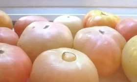 - Сушка (вяление). Нарезанные дольками плоды можно высушить в электросушилке или духовке при низкой температуре. Полученные томатные чипсы хранят в стеклянных банках с добавлением сушеных трав и используют как ароматную добавку к блюдам.