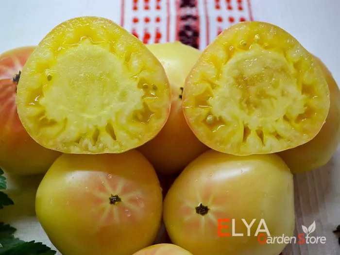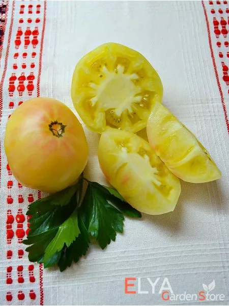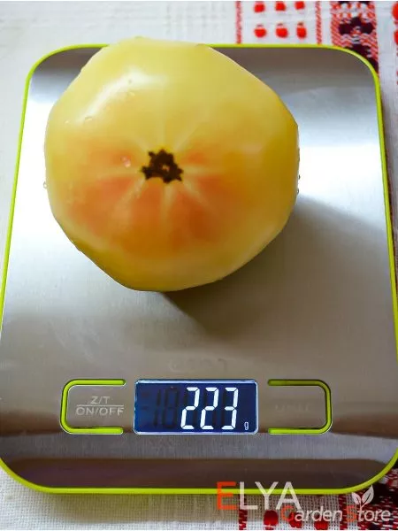 Плоды плоскоокруглой, бифштексной формы и крупного размера (от 150 до 250 граммов, а иногда и больше) идеально подходят для нарезки крупными, эффектными ломтями. Их необычный окрас — от белого до бледно-желтого с розовым румянцем — создает яркие акценты в салатах, на бутербродах и сэндвичах. Благодаря высокому содержанию сахаров и отсутствию кислоты, этот томат можно использовать даже в фруктовых салатах или как самостоятельный десерт.