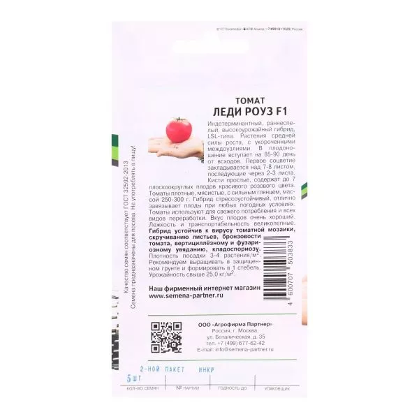 Таким образом, появление Леди Роуз отвечает запросу на универсальный, неприхотливый и высокопродуктивный томат для защищенного грунта, способный стабильно плодоносить в самых разных климатических зонах.