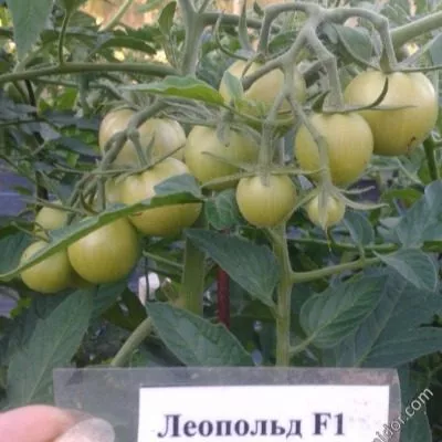 Форма плодов классическая, округлая, с ровным основанием и гладкой вершиной. Ребристость, характерная для многих сортов, у Леопольда полностью отсутствует, что придает плодам аккуратный, «лакированный» вид. Средняя масса одного томата составляет от 81 до 102 граммов. Такой калибр считается универсальным: плоды достаточно компактны для удобного размещения в банке при цельноплодном консервировании и в то же время имеют солидный вес для нарезки в свежие салаты.