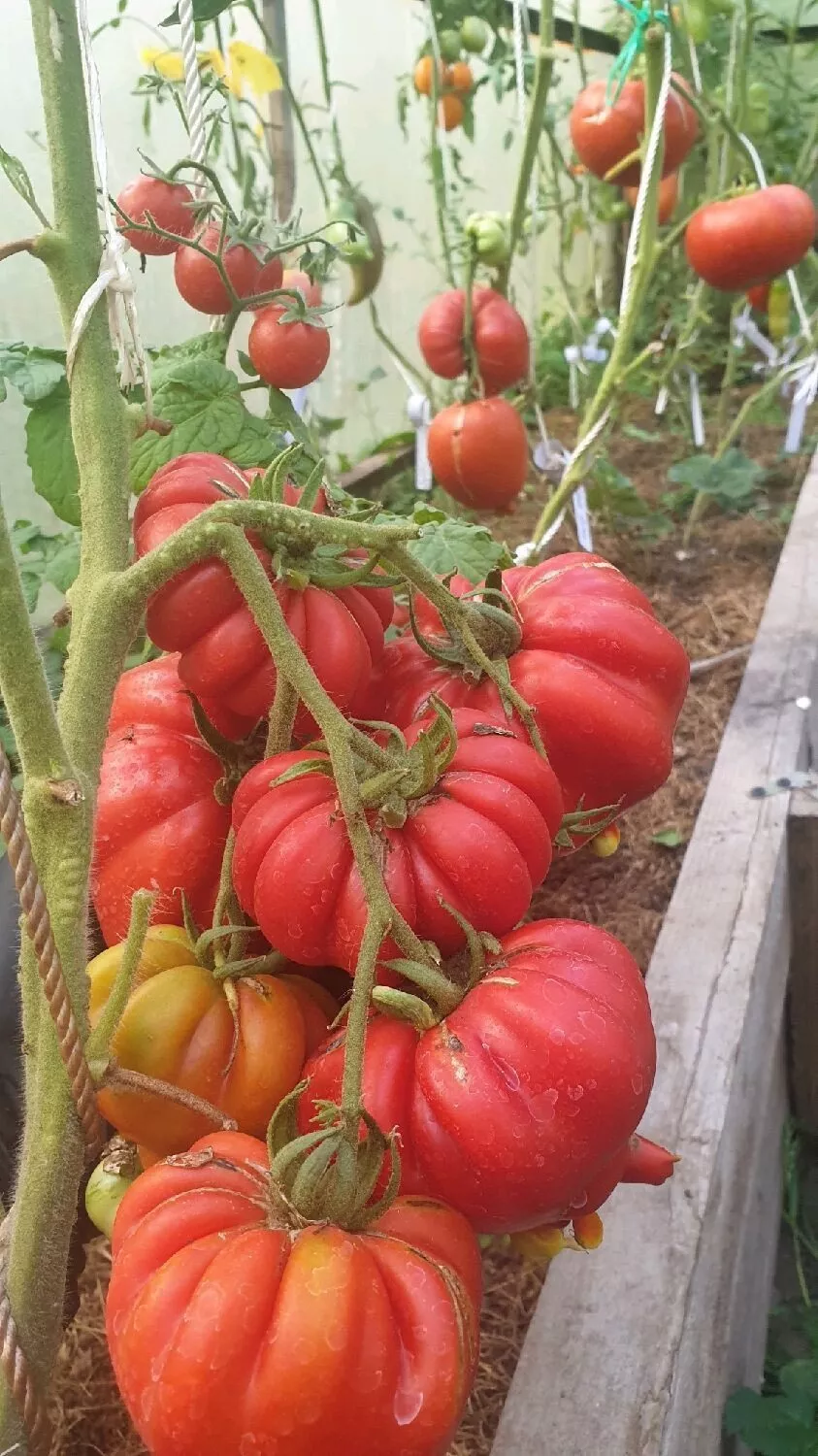 Средняя масса плода составляет 300-500 граммов, но на нижних кистях нередки гиганты весом 800-1000 граммов. Такая существенная разница в весе — ключевая особенность, которую важно учитывать при формировании куста и подвязке. Первые завязи, формирующиеся на нижних соцветиях, получают максимум питания и часто становятся рекордсменами. Плоды на верхних кистях обычно мельче, но также соответствуют заявленным характеристикам.