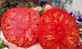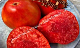 Мякоть отличается исключительной плотностью и мясистостью, количество семян и сока невелико. Такая структура, с выраженными семенными камерами, является классической для биф-томатов. Плотная кожица, несмотря на тонкость, достаточно прочна, чтобы удерживать форму крупного плода, но не грубая.
