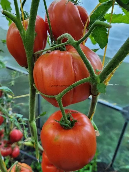 Плоды имеют ярко выраженную сердцевидную форму с характерным «носиком». Асимметрия – обычное явление для этого сорта, особенно у самых крупных экземпляров. Наблюдается выраженная разнокалиберность в пределах одной кисти: первые, базальные плоды всегда массивнее последующих.
