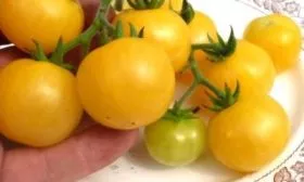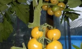 Ярко-желтый цвет зрелых плодов указывает на их принадлежность к группе биколоров или желтоплодных томатов. Такие плоды, как правило, содержат меньше кислот и больше сахаров, что и подтверждается заявленным очень сладким, фруктовым вкусом.
