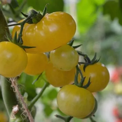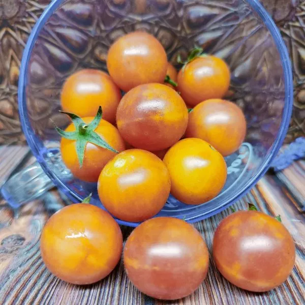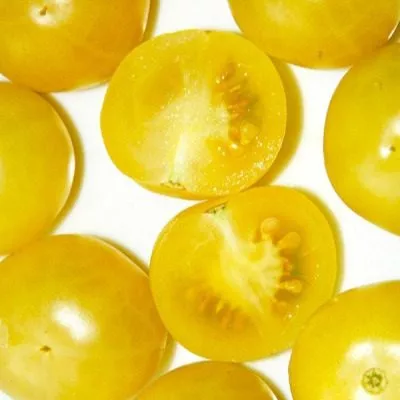 Ярко-желтый цвет зрелых плодов указывает на их принадлежность к группе биколоров или желтоплодных томатов. Такие плоды, как правило, содержат меньше кислот и больше сахаров, что и подтверждается заявленным очень сладким, фруктовым вкусом.