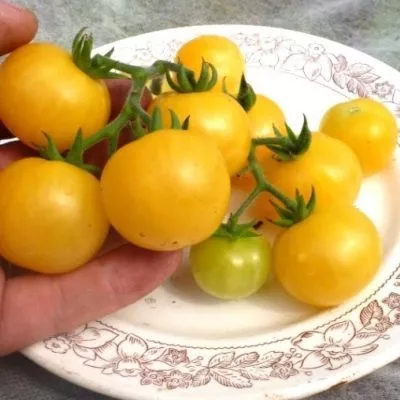 Плоды этого сорта — его главная гордость и визитная карточка. Их уникальность начинается с внешнего вида. Помидорки округлые, идеально ровные, как откалиброванные бусины. В стадии полной зрелости они приобретают равномерный ярко-желтый цвет без зеленого пятна у плодоножки, что свидетельствует о качественном созревании.
