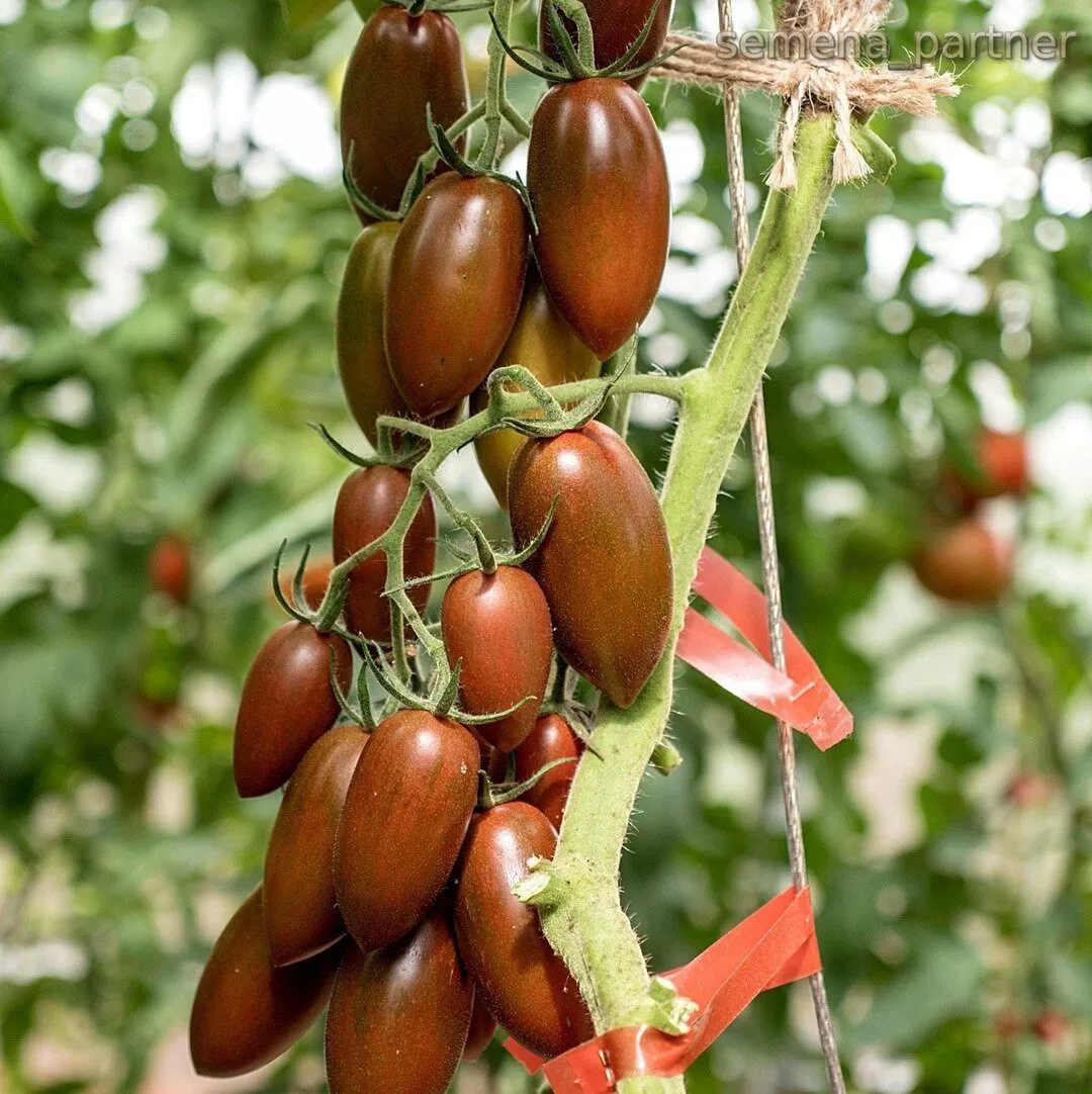 Окраска меняется по мере созревания: в технической спелости плоды светло-зеленые, равномерные, без темного пятна у плодоножки. При полном созревании они наливаются интенсивным, классическим красным цветом. Плотная, но не грубая кожица обеспечивает устойчивость к растрескиванию. На разрезе видна плотная, мясистая мякоть с малым количеством семян. Семенных камер, как правило, две, что характерно для сливовидных томатов.