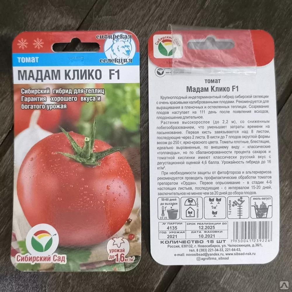 | Для получения семян | Неприменимо | Неприменимо | Мадам Клико — гибрид F1. Семена из его плодов не сохраняют родительских качеств, поэтому сбор семенного материала не имеет смысла. |