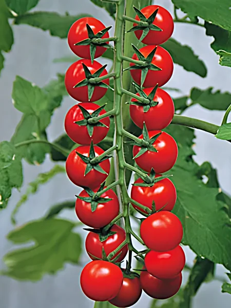 В одной такой кисти может одновременно созревать от 15 до 20 плодов. Помидорки в кисти выровнены по размеру и форме, что создает эффектную, декоративную картину. Благодаря этой особенности, взрослые, усыпанные плодами кусты в теплице выглядят чрезвычайно живописно.