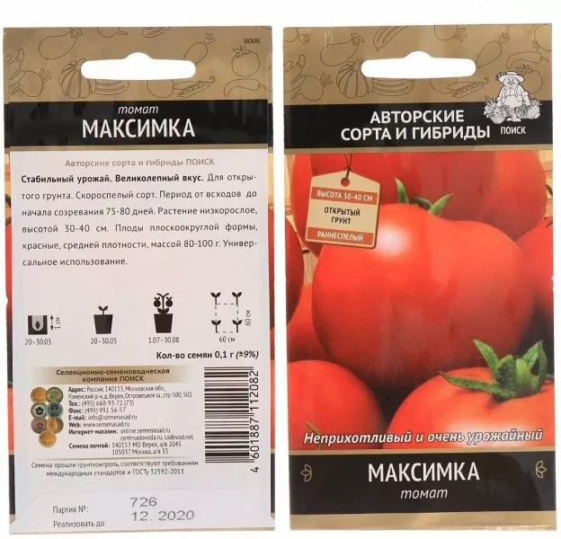 Название «Максимка» отражает стремление к максимальной отдаче в минимальные сроки. Сорт позиционируется как один из самых ранних среди детерминантных томатов для открытого грунта в своем регионированном ареале, что и подтверждается его популярностью на протяжении более полутора десятилетий.