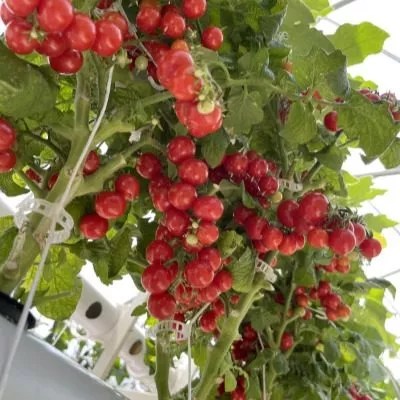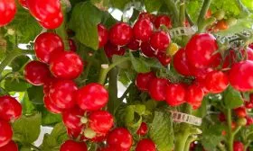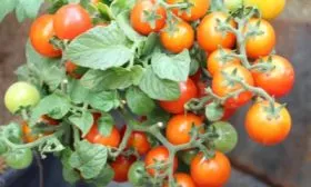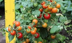 Плоды формируются в многочисленных и плотных кистях. Из-за обильной нагрузки плодами листовая масса может визуально казаться умеренной — это характерная особенность сорта, а не признак нехватки питания. В пик созревания миниатюрный куст буквально усыпан гроздьями алых помидорок, напоминая новогоднюю елку с гирляндами, что обеспечивает высокую декоративность.