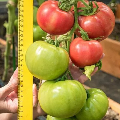 Средняя масса плода соответствует заявленным 300 граммам, однако наблюдается выраженная градация по кистям. Первые, нижние кисти часто формируют настоящих гигантов массой 400-500 граммов и более. Плоды из верхних кистей, как правило, мельче. Это важно учитывать при планировании подвязки и формировании куста, так как нагрузка на стебли и опоры от первых плодов будет максимальной.